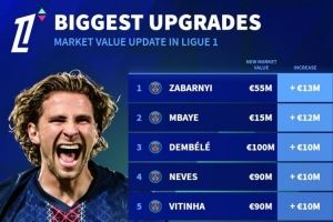 法甲球员身价上涨排名: